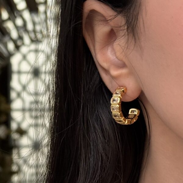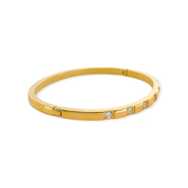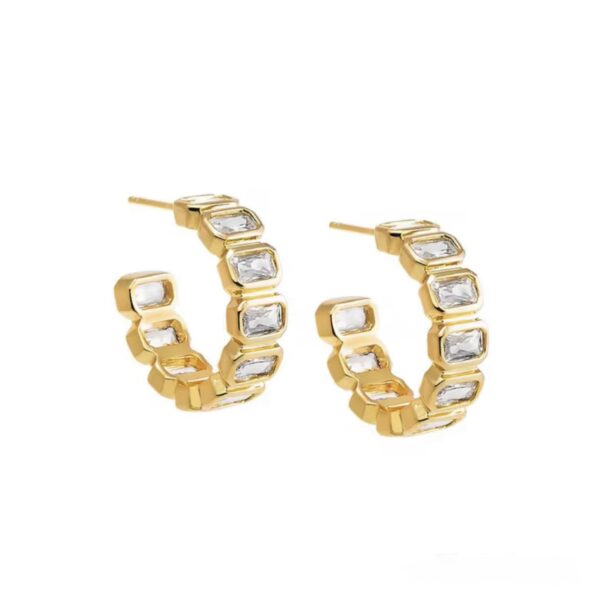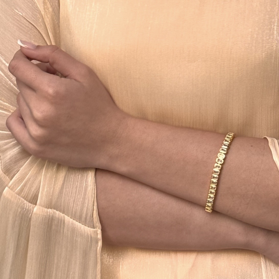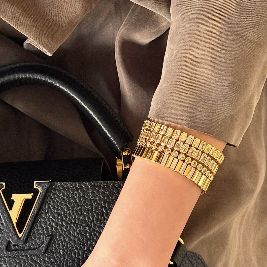 Luxury 18k gold plated bracelet paved with emerald-cut clear cubic zirconia stones.